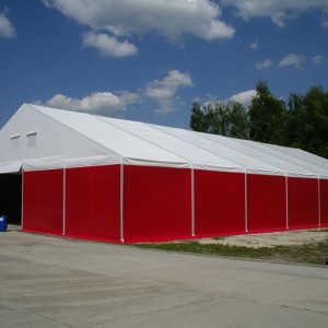Wielką popularnością cieszą się nasze hale namiotowe wykorzystywane jako magazyny. Szybkość realizacji zamówienia (zależnie od wielkości: 1-3 miesiące od projektu do montażu) oraz uproszczone procedury prawa budowlanego, pozwalają na szybkie zabezpieczenie towaru. Każda produkowana przez nas hala ma indywidualne wymiary, kolorystykę oraz rozmieszczenie bram. Czas montażu wynosi od 1 do 2 dni.